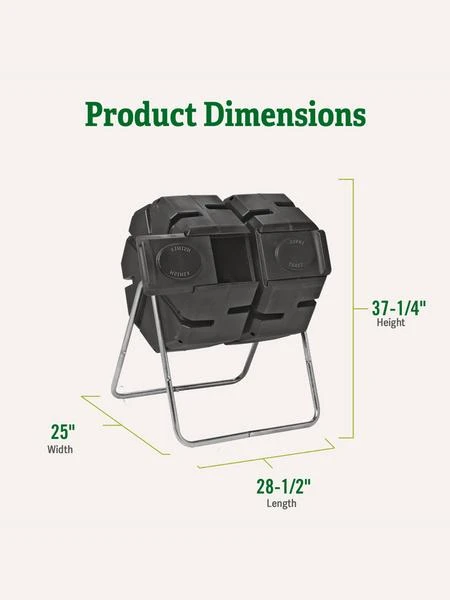 - Two bins rotate separately; each bin holds approximately 3 cubic feet