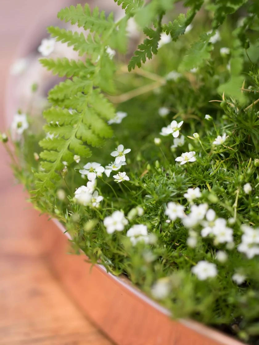 • Handsome copper tray dresses up potted plants and protects surfaces